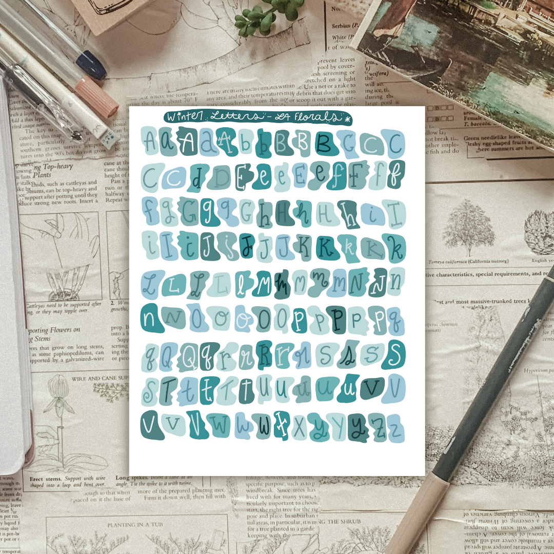 Blue Random Note Letters Sticker Sheet