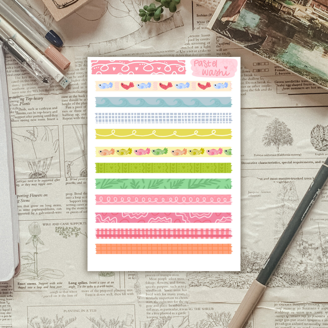 Choose between clear and our classic matte white sticker sheet paper for your stickers! These sticker sheets are formatted into longer strips, replicating the form of washi tape strips!