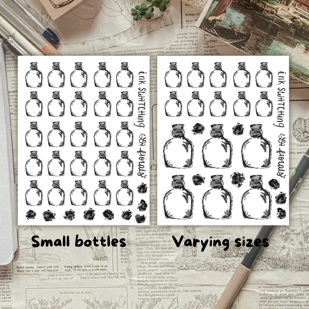 CLEAR Ink Swatch Bottles Sticker Sheet on Clear sticker paper