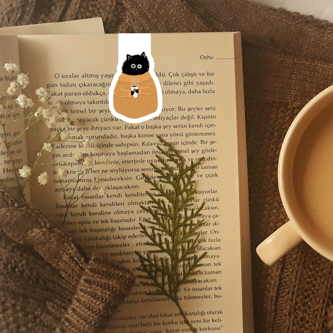 Coffee Cup Black Cat Folding Magnetic Bookmark